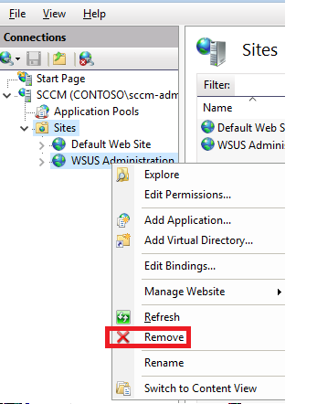 아래의 자료를 참고하여 IIS 상에서 WSUS Administration 사이트를 Remove