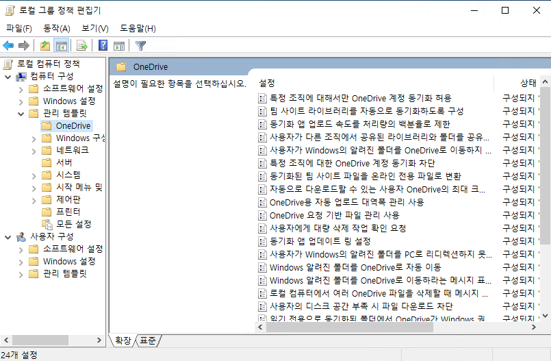 아래와 같이 Onedrive 정책을 확인하고 수정할 수 있습니다.