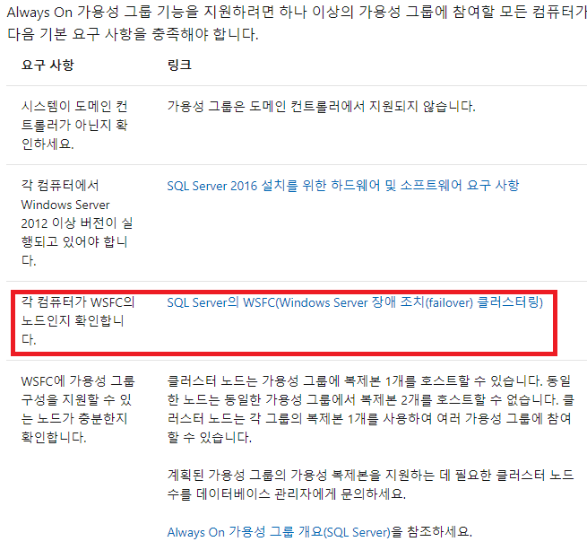 또한 쿼럼은 File share witness 방식으로 구성하는 것을 권장합니다.