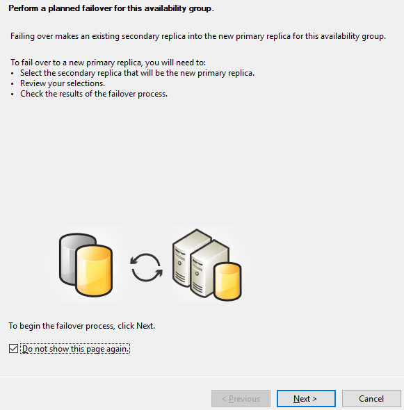 Always on High Availability 메뉴로 이동하여 Failover