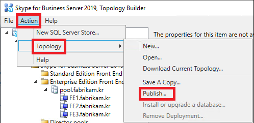 비즈니스용 Skype 서버에서 새 토폴로지 만들기 및 게시