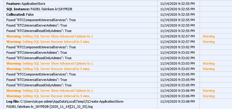 Invoke-Sqlcmd -Query “ALTER DATABASE [rtcxds] SET RECOVERY FULL WITH NO_WAIT;” -ServerInstance “FADB1\SKYPEDB”