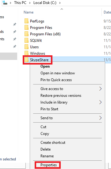 SkypeShare 라는 폴더를 생성 - 우클릭 - Properties
