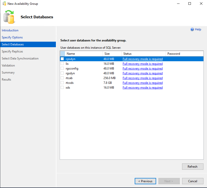 Availability Group Name을 지정합니다.