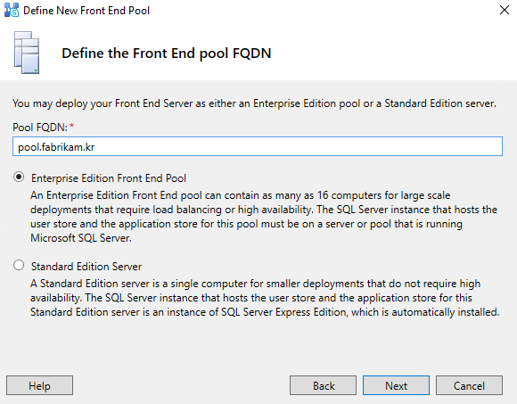 Pool FQDN 을 입력한 뒤, Next