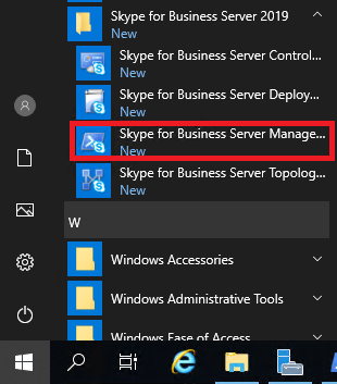Skype for business Server 2019 Control Panel 을 실행합니다.
