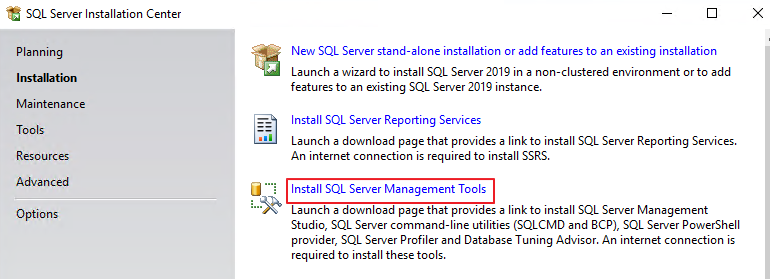 Install SQL Server Management Tools - 클릭 - 다운로드 및 설치 진행
