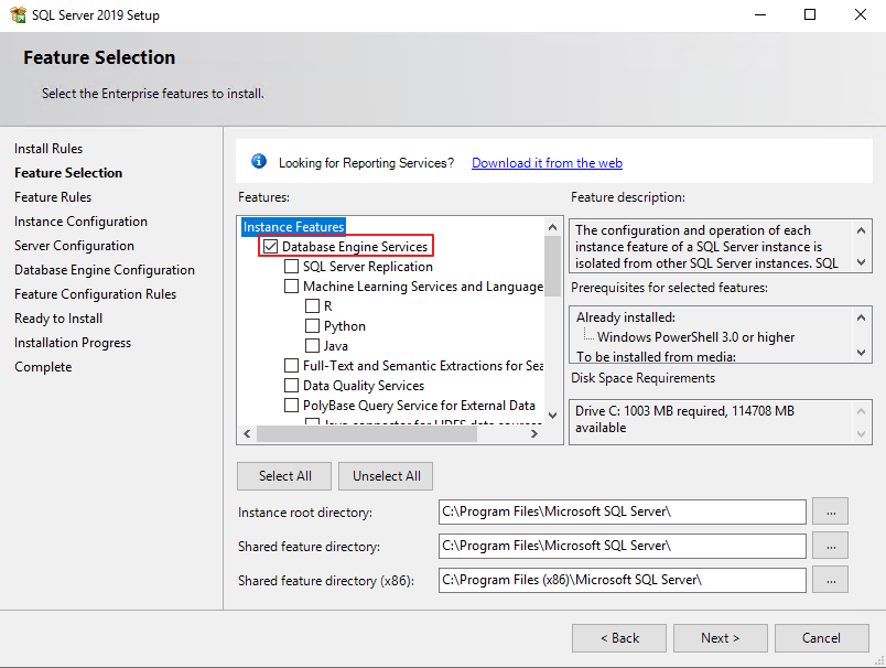 Database Engine Services 체크 - Next