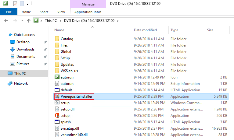 설치 디스크에서 PrerequisiteInstaller 를 실행합니다.