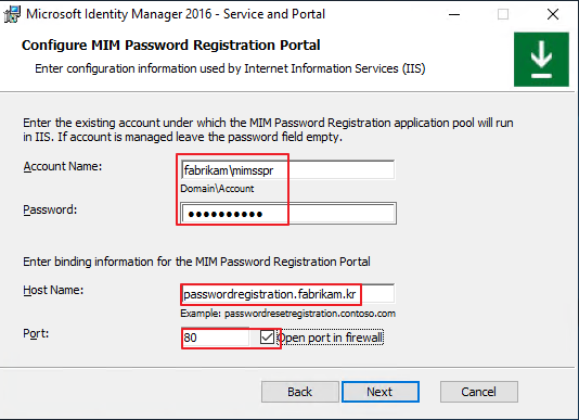 setspn -S http/passwordregistration.fabrikam.kr fabrikam\mimsspr