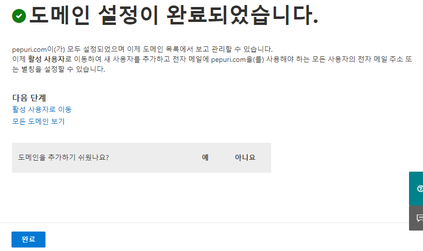 도메인 구매가 완료되었다면, M365 관리센터 - 설정 - 도메인 메뉴로 이동합니다.