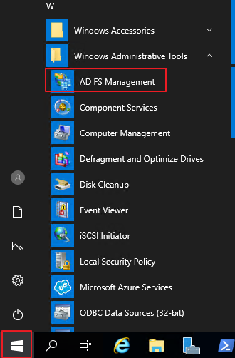 시작 버튼 - Windows Administrative Tools - AD FS Management