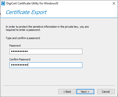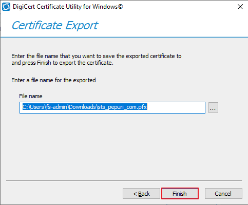 ADFS 머신에서 Digicert Util 을 실행 - Export Certificate