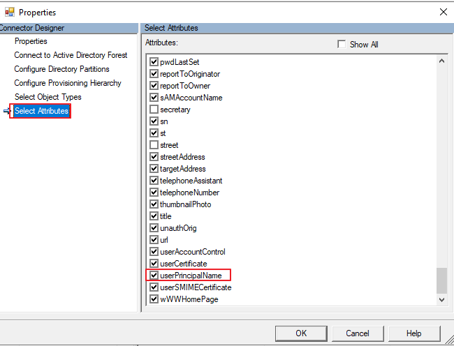 Select Attributes - userPrincipalName 확인