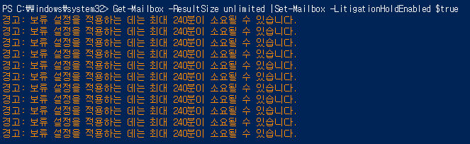Powershell로 모든 사서함에 설정해야 한다면 다음과 같이 진행합니다.