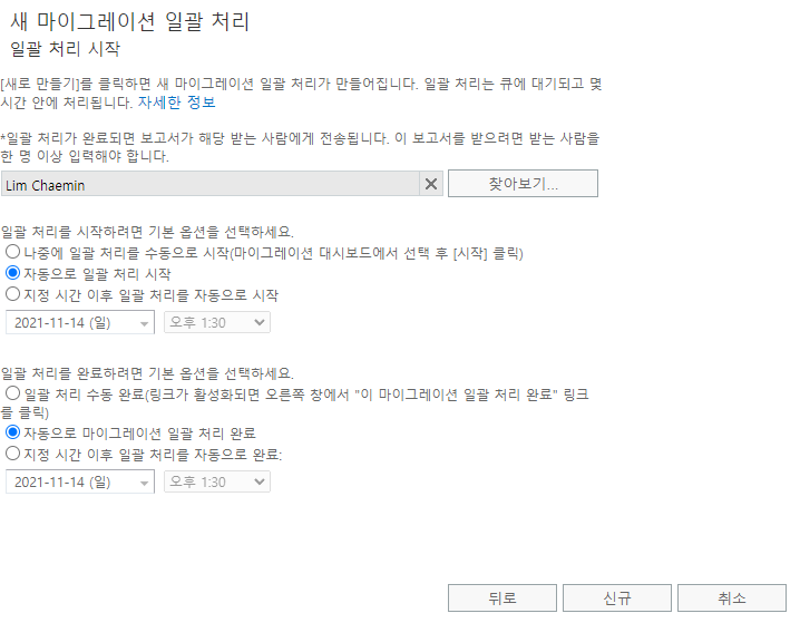 빠르게 확인하기 위해서 Powershell로 재시도 - 정상적으로 마이그레이션이 진행되는 것으로 확인됩니다.
