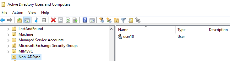 AAD Sync 안 되는 위치에 사용자 개체 생성