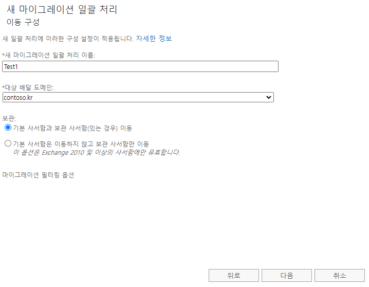 Exchange Online 관리 센터에서 마이그레이션 완료된 것으로 확인