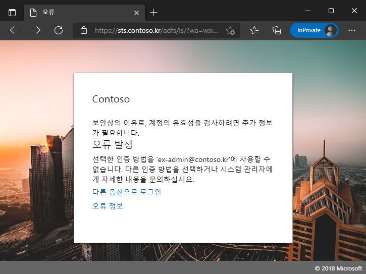 만약 인증수단이 등록되어 있지 않으면, 아래와 같이 오류가 발생할 수 있습니다.