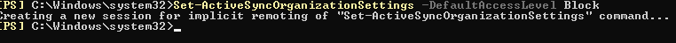 Set-ActiveSyncOrganizationSettings -DefaultAccessLevel Block