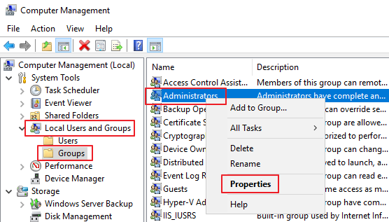 아래의 경로로 이동한 뒤 Administrators - Properties