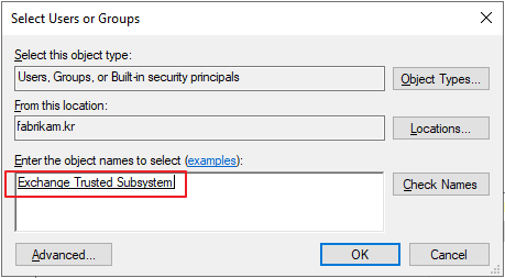 Exchange Trusted Subsystem 을 추가