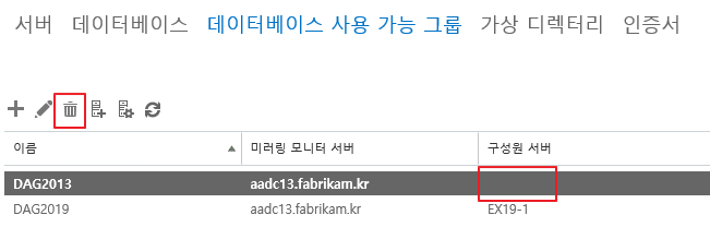 구성원 서버가 전부 제거되었으면, 2013 DAG를 완전히 제거합니다.
