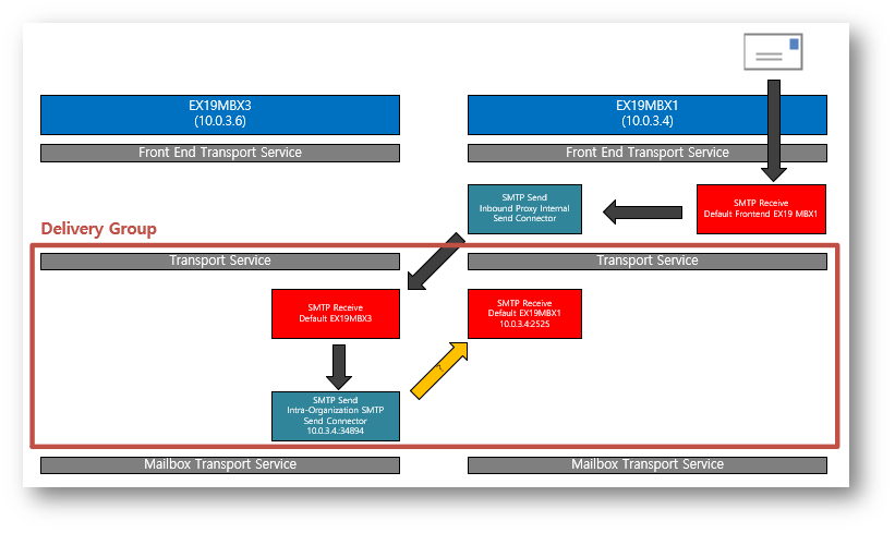 - 수신자가 Exchange 조직내의 사서함이면 DB가 목적지입니다. 이 부분은 Inbound 흐름에서 확인할 수 있었습니다.