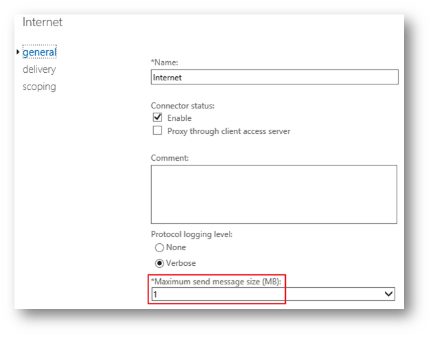 | If the message size exceeds the connector size restriction for all connectors, an NDR is returned to the sender. 메시지 크기가 모든 커넥터에 대한 커넥터 크기 제한을 초과하면 보낸 사람에게 NDR이 반환됩니다. |
