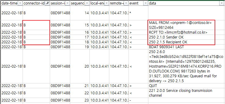 | 2. Exchange narrows the list of remaining connectors to those that satisfy all of the following criteria: Exchange는 다음 기준을 모두 충족하는 커넥터로 나머지 커넥터 목록을 좁힙니다. The connector is scoped to another Exchange server in the local Active Directory site, or isn't scoped at all (is available to all Exchange in the Active Directory forest). 커넥터는 로컬 Active Directory 사이트의 다른 Exchange 서버로 범위가 지정되거나 범위가 전혀 지정되지 않습니다 (Active Directory 포리스트의 모든 Exchange에서 사용 가능). The connector is enabled. 커넥터가 활성화되었습니다. The connector is configured with an address space that matches the recipient's email address. 커넥터는 수신자의 이메일 주소와 일치하는 주소 공간으로 구성됩니다. |