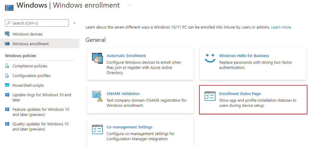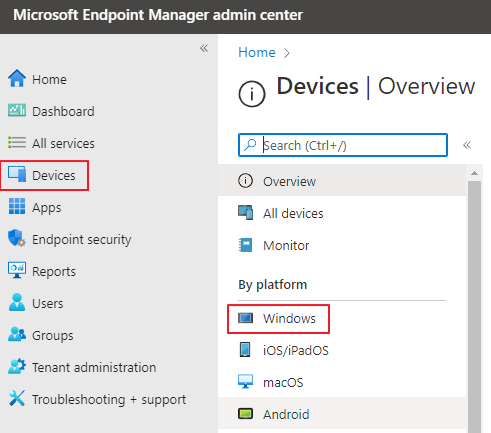 Microsoft Endpoint Manager admin center (MEM Admin Center) -> Devices  -> Windows