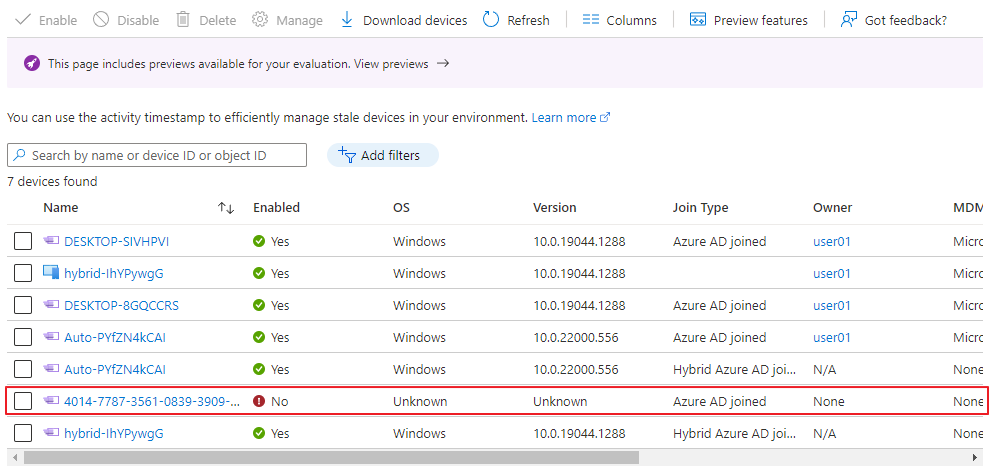 Azure Portal에서는 아래와 같이 Computer Name 맵핑되며, Intune 등록으로 변경됩니다.