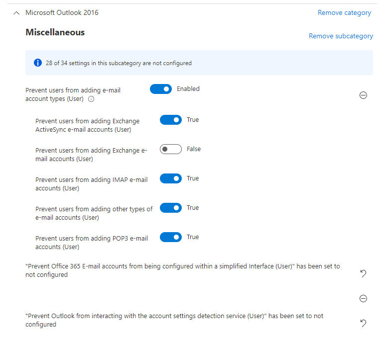 추가적으로 profile 검색 -> Microsoft Outlook 2016\Miscellaneous 선택 -> Prevent users from making changes to Outlook profiles (Users) 체크 (해당 설정은 제어판에서 프로필을 사용자가 수정하는 것을 차단합니다.)