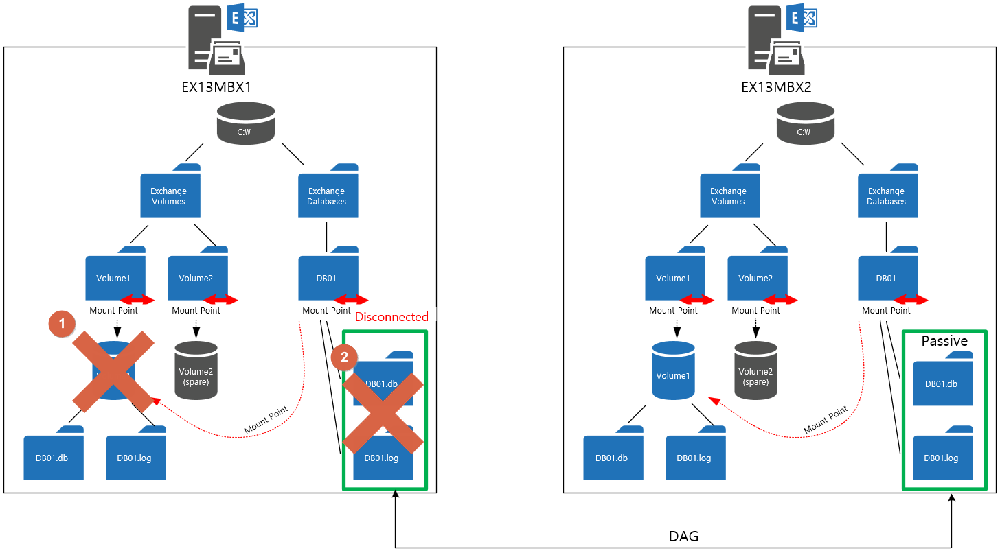AutoReseed는 Exchange Server 2013 이후에 도입된 기능으로 Disk 이슈로 인하여 복제문제가 발생시 Spare(예비) Disk를 활용하여 자동 복제되도록 하는 기능입니다.