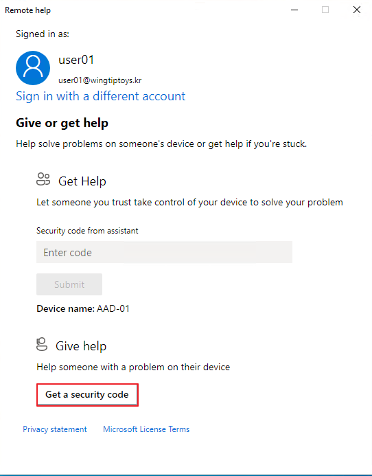 Remote Help를 사용하려면 적절한 권한이 필요합니다.