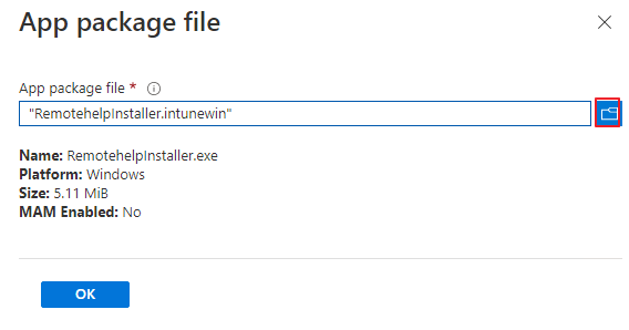 IntunWinAppUtil -c c:\remote -s c:\remote\RemotehelpInstaller.exe -o c:\remoteoutput -q