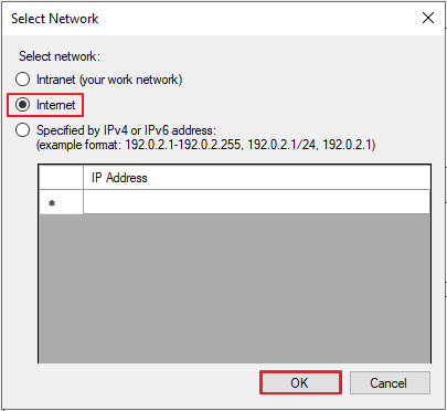 Everyone -> from specific network 체크 -> 하단의 specific 클릭