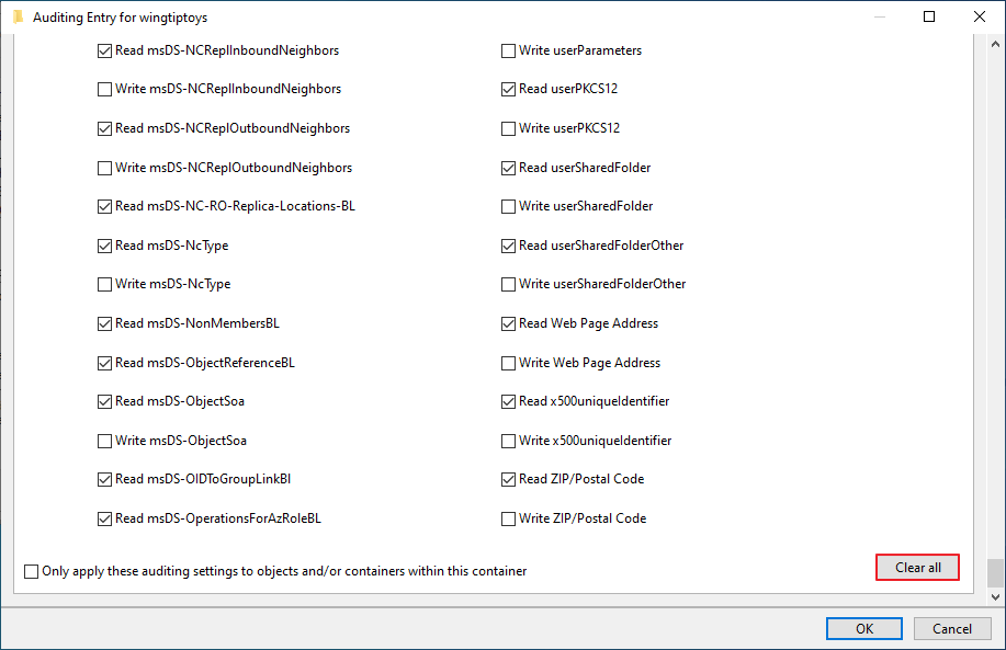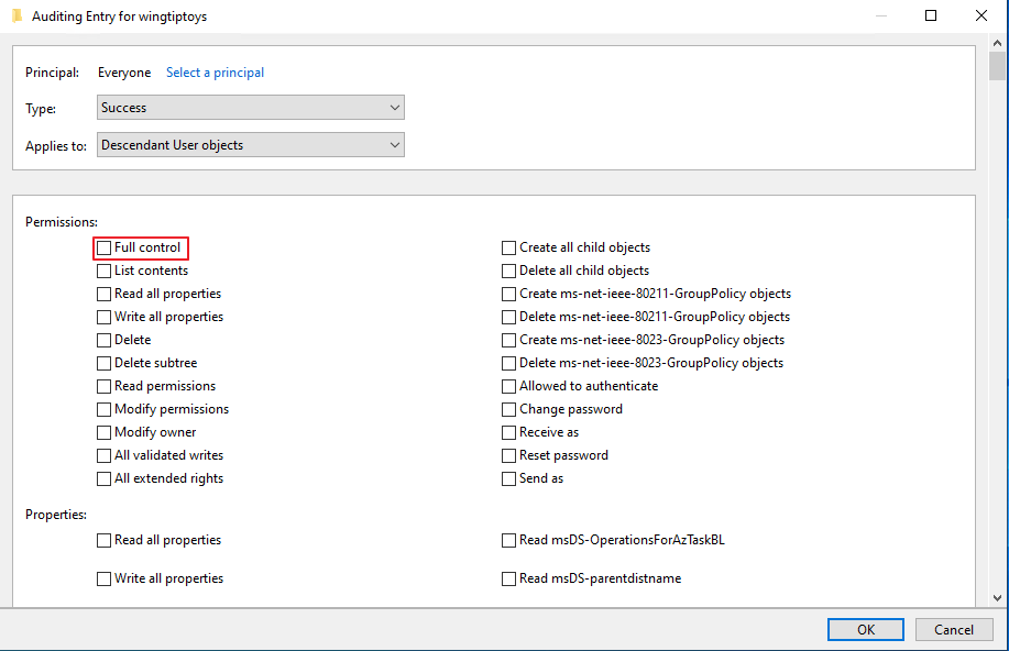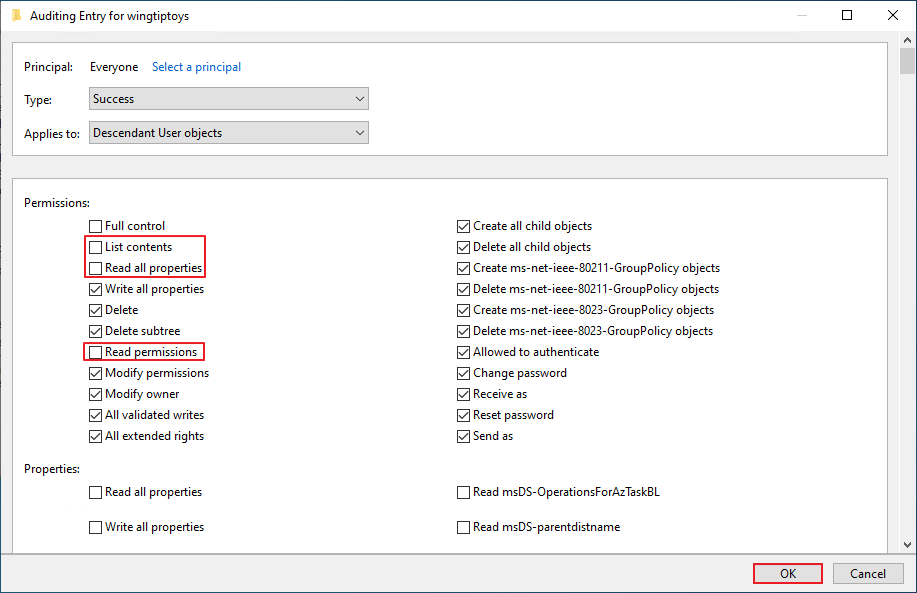 Read all properties, Write all properties 체크 -> OK