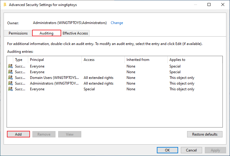 Auditing -> Add