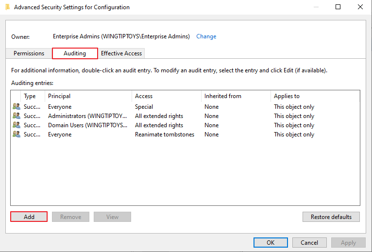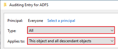 [1-5] Enable auditing on an ADFS object