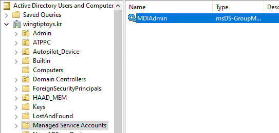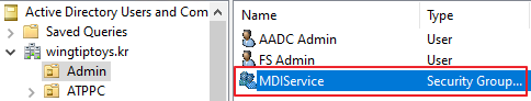 New-ADServiceAccount -Name MDIAdmin -DNSHostName “mdiadmin.wingtiptoys.kr” -PrincipalsAllowedToRetrieveManagedPassword MDIService