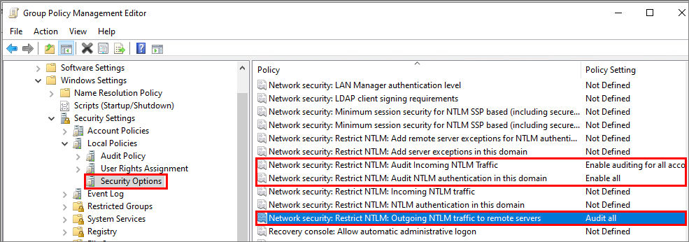 Computer Configuration -> Policies -> Windows Settings -> Security Settings -> Local Policies -> Security Options 로 이동한 뒤, 아래와 같이 정책을 설정합니다.