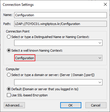 ADSI Edit 우클릭 -> Connect to