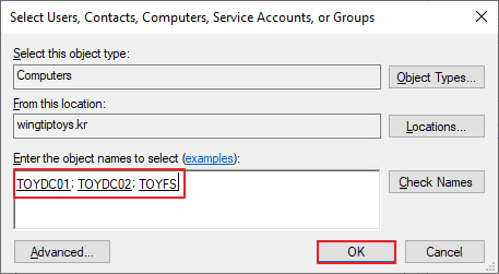 DC와 ADFS 를 지정 -> OK