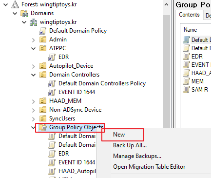 Group Policy Objects -> 우클릭 -> New