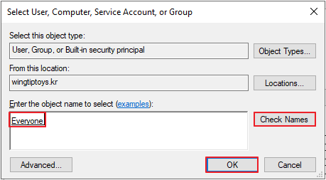 Everyone -> Check Names -> OK
