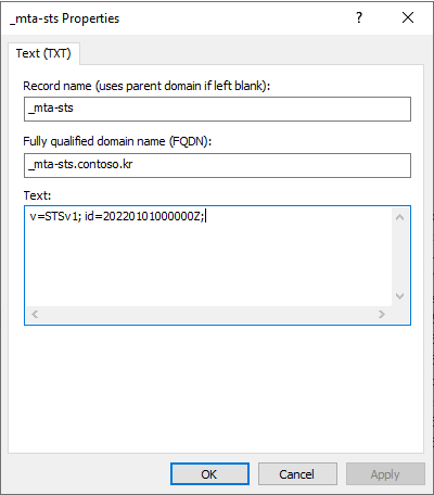 _mta-sts.<domain>. 3600 IN TXT v=STSv1; id=20220101000000Z;