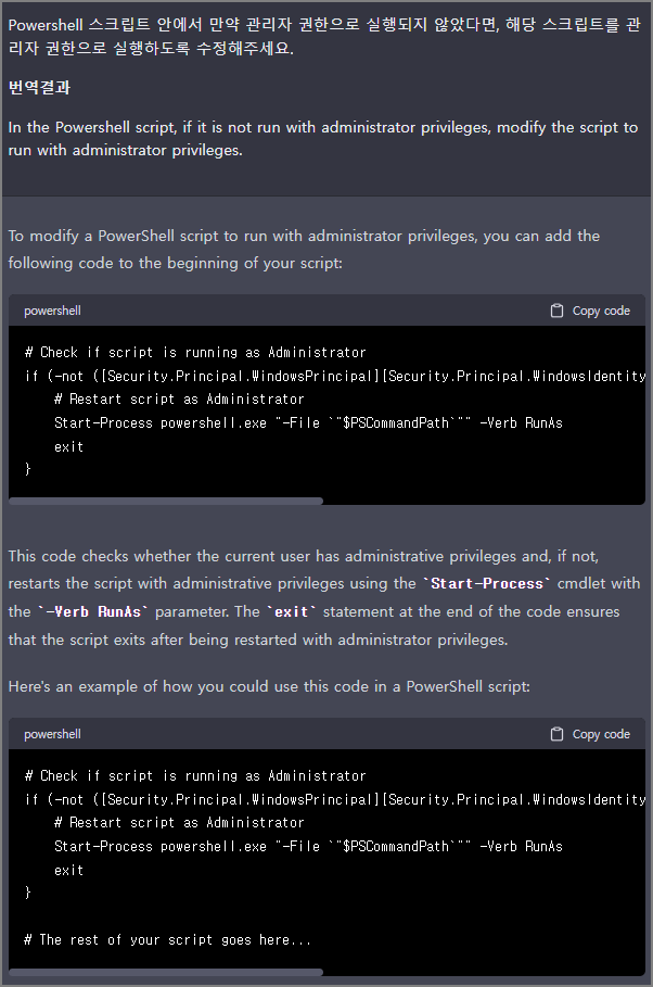 스크립트가 관리자 권한으로 실행되어 있지 않으면,
