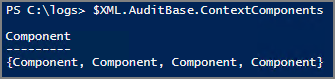 대부분의 속성이 위치하고 있는 ContextComponents 를 $XML.AuditBase.ContextComponents 로 조회해보면, 각각의 4개의 Component로 조회됩니다.