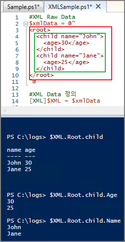 위 스크립트에서 가장 중요한 [XML]$XML 입니다. ChatGPT에게 확인해 보았습니다.